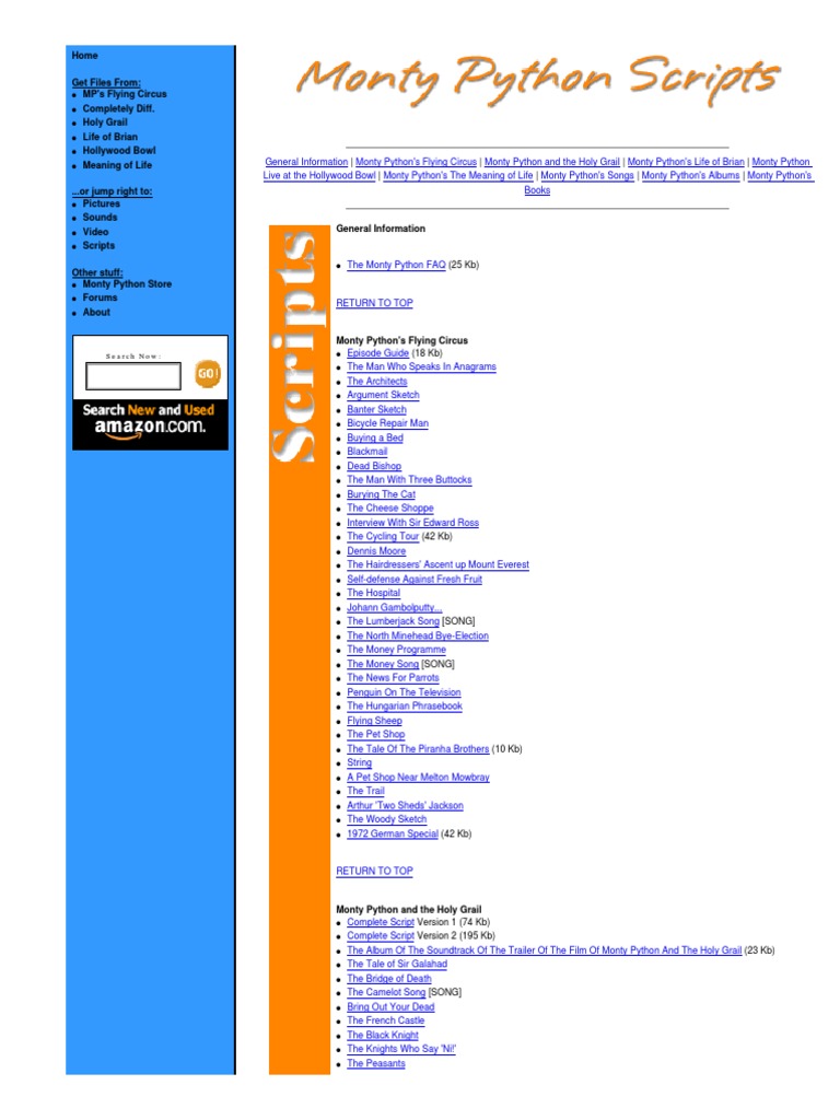 Scripts and sounds from monty python holy grail meaning of life and life of brian.